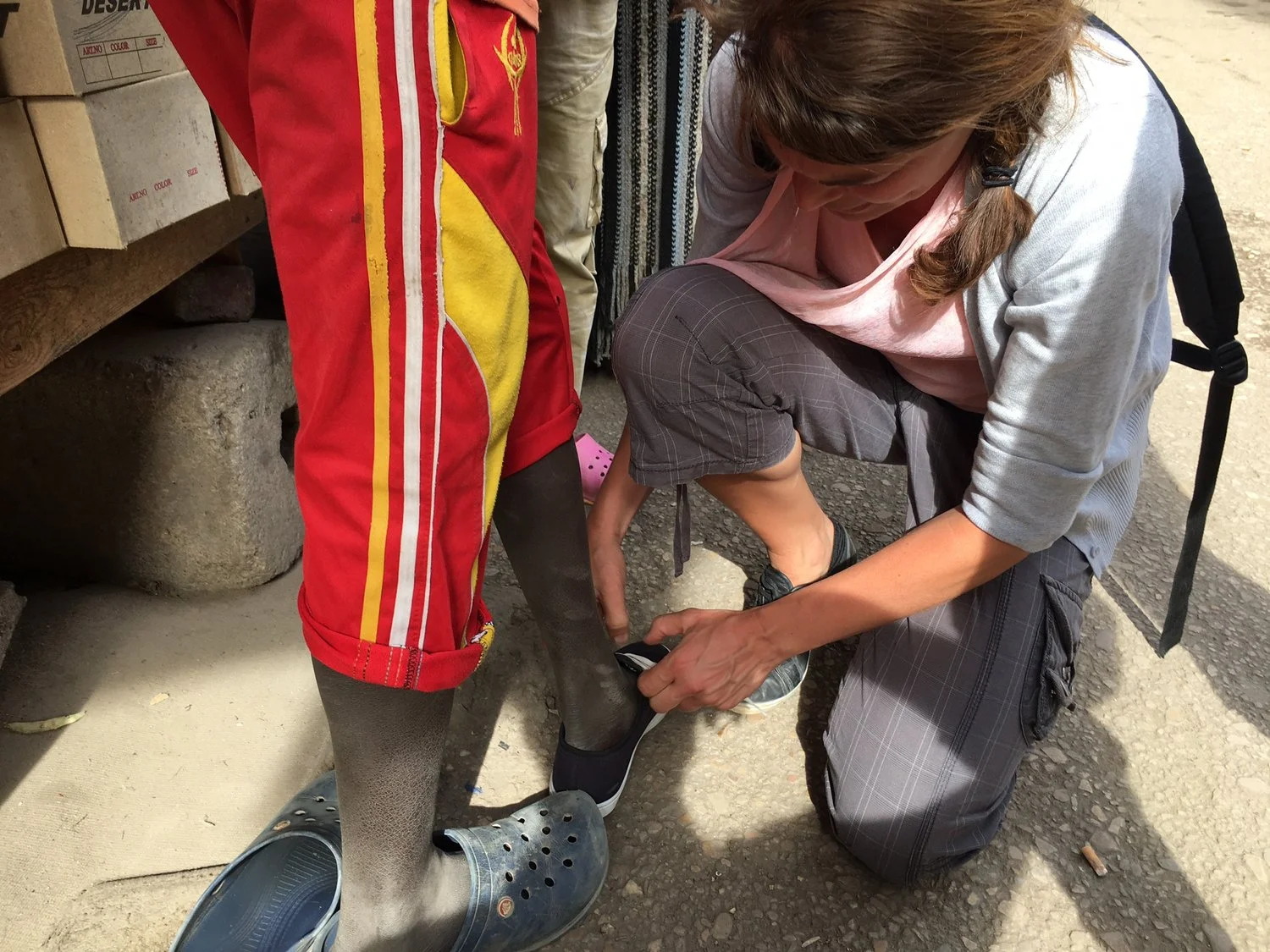 While we were showing 30 kids newly purchased shoes, and while they were excitedly trying them on, my eyes wandered towards my own feet. And towards my own life... Have I ever been so happy to get new shoes? Why do these children's feet look as if they're many years older than mine? What paths have these feet traveled? What would my life be like in their shoes?